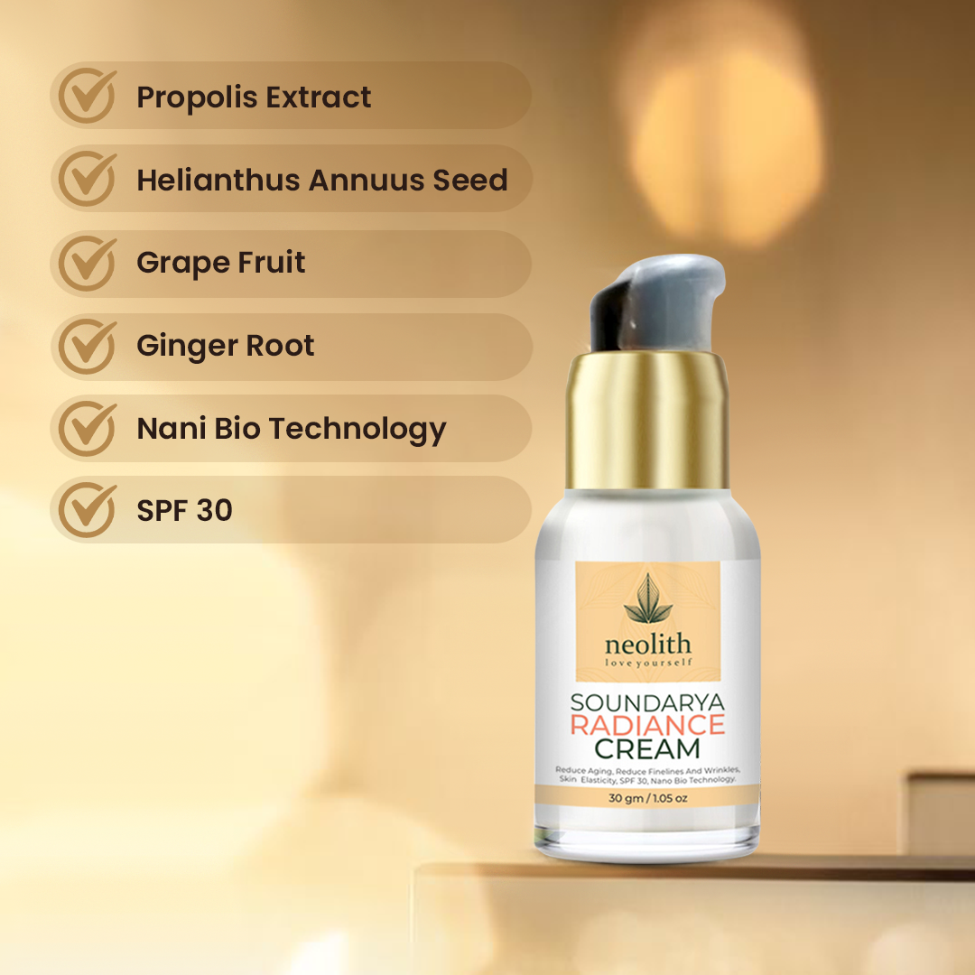 Neolith Soundarya Radiance Cream is the most advanced skin care gift from the house of Neolith. This amazing cream is 92% Organic in Nature (And Certified too). It deeply moisturizes the skin, improves elasticity and firmness, Helps in controlling collagen depletion, increases skin elasticity and smoothens fine lines. It also protects the skin against the detrimental effects of UV radiations & works as a Natural face moisturizer. Moreover the Olive Oil Derivatives Present in this amazing cream are Natural Blockers of Melanin Synthesis. So with each regular usage cycle of 27 Days use, this Amazing Radiance Cream will improve your complexion, will lighten dark spots & blemishes, and will give that youthful glow that makes you stand out at every place you visit.